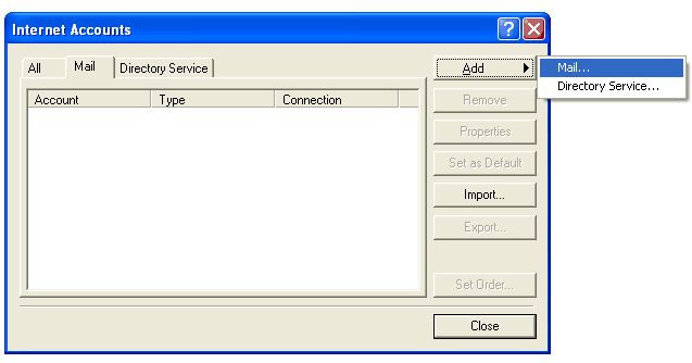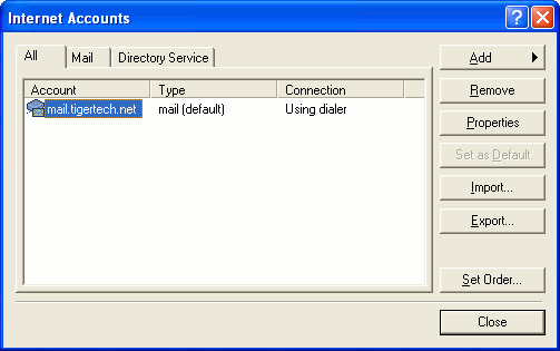 Click OK to close the Properties window, then click Close to close the Internet Accounts window.